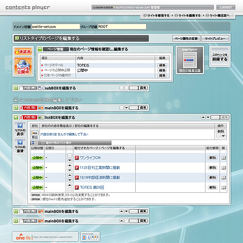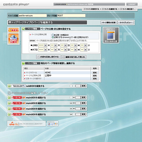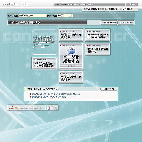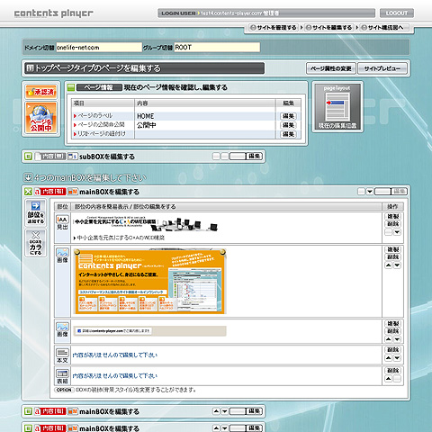 contents playerは、触ってもらえると一目瞭然です。サイト変更が自在にできます。